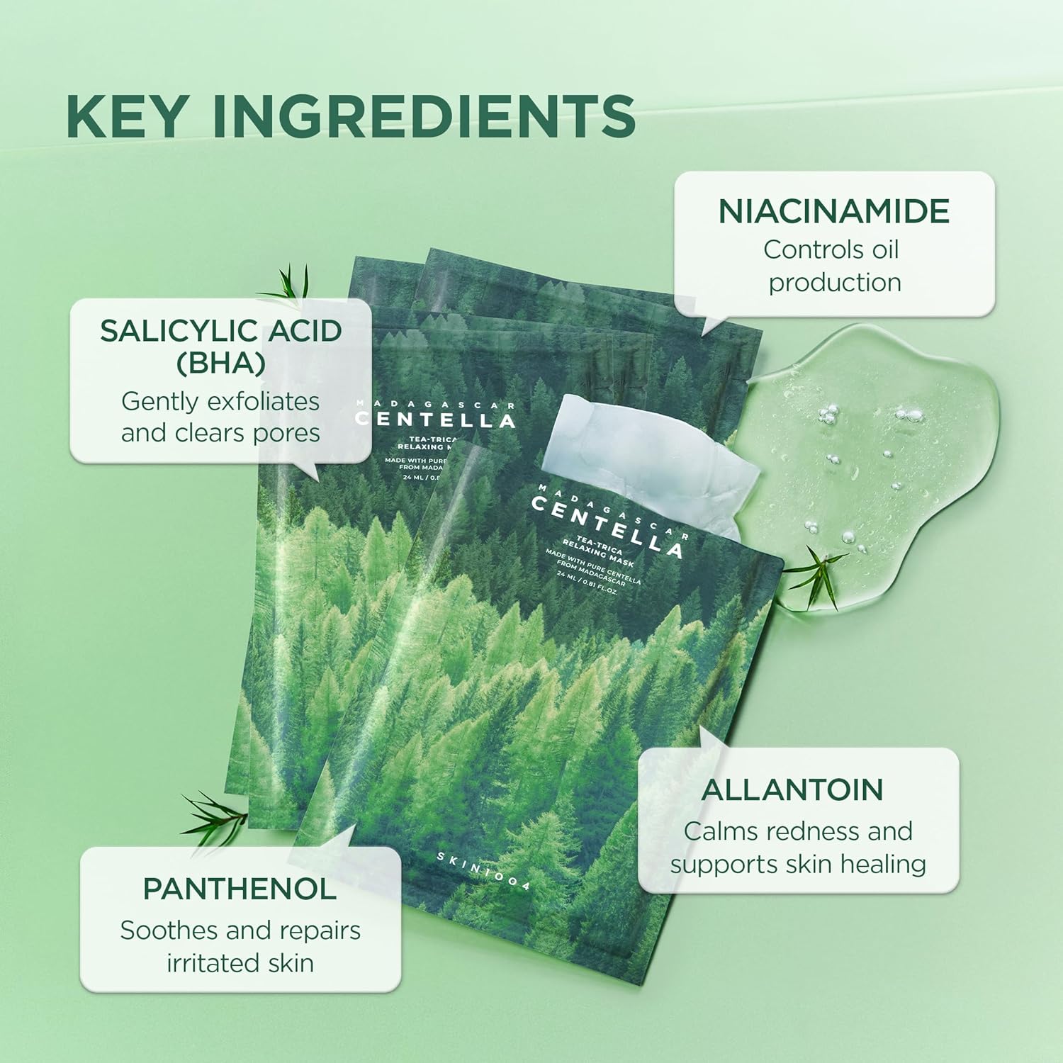 - A sheet mask packed with Tea Tree Complex, Madagascan Centella, and Salicylic Acid to clarify pores, and protect the skin.